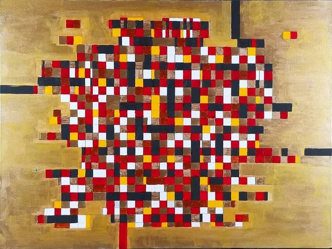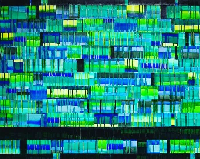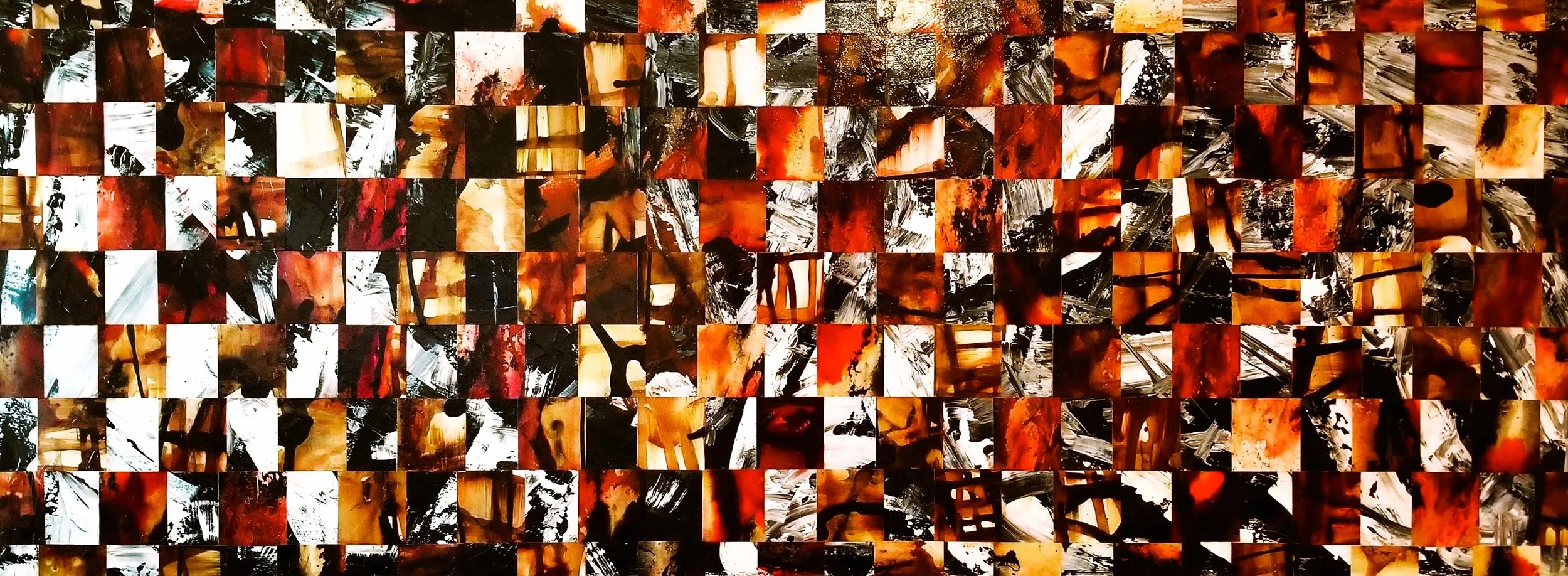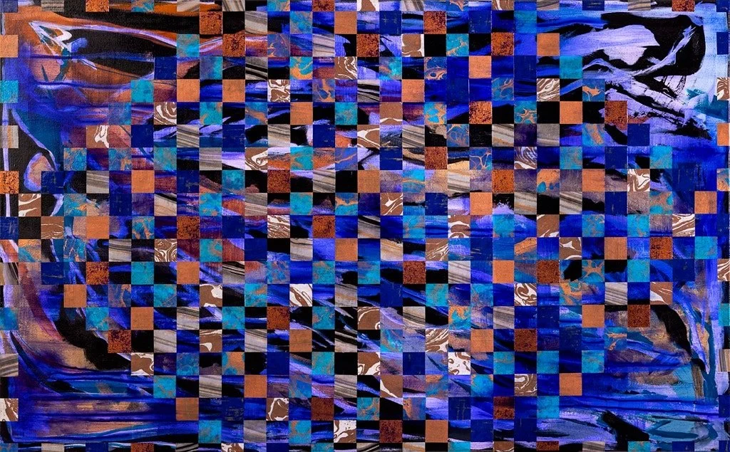 Collage of watercolor and acrylic paper ‘tiles’ on canvas. 48”x60”